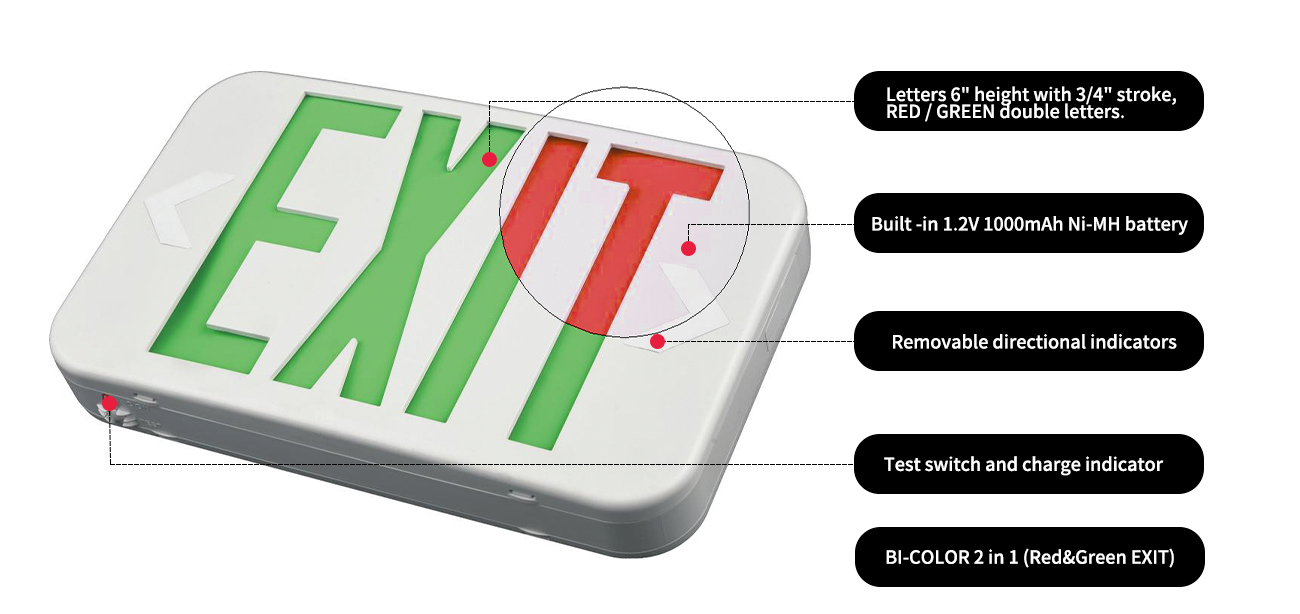 * Illumination - Quod LED exit signum series illuminationis est effectum per usum longa-perpetuam, efficient ultra rubrum aut viridi leucat. Color-matched diffusor excludit calidum maculis et striations, providing optimal lux output.