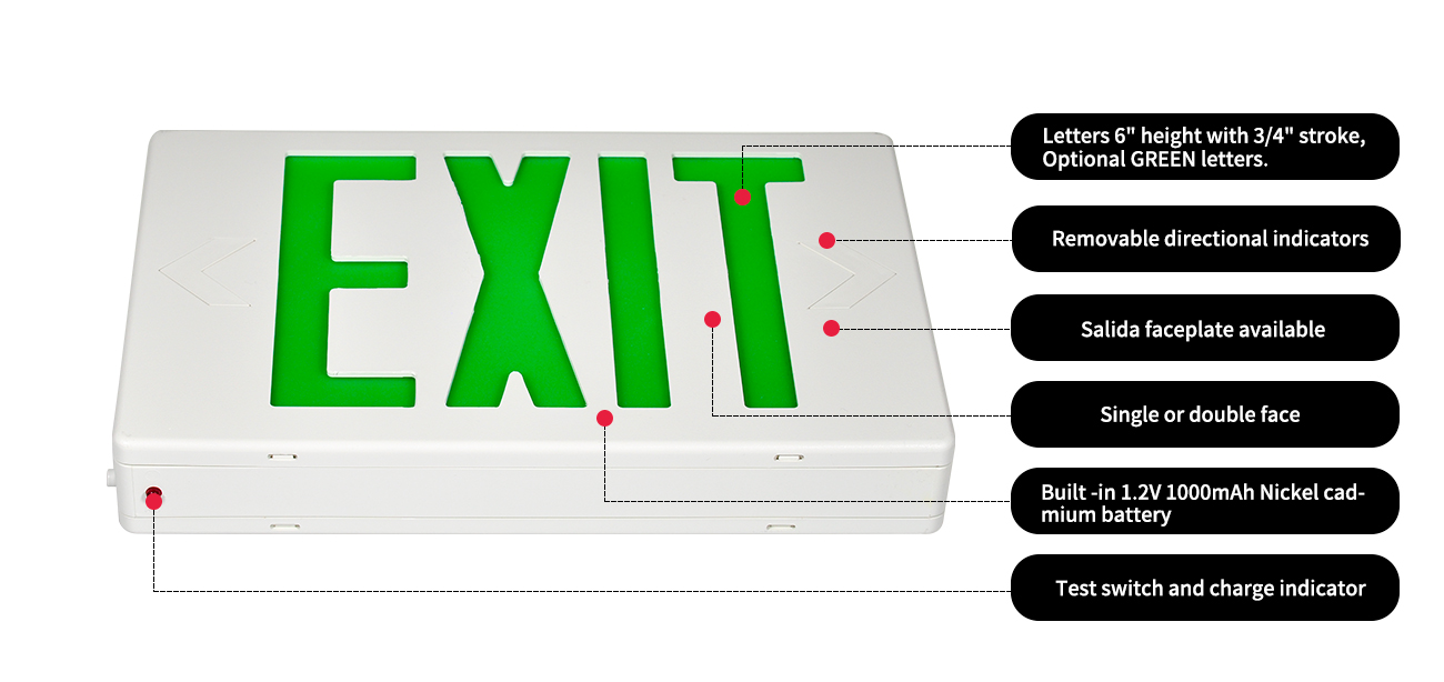 * Illumination - Quod DUXERIT exit signum series illuminationis est effectum per usum longa-perpetuam, efficient ultra clara viride LEDs. Color-matched diffusor excludit calidum maculis et striations, providing optimal lux output.