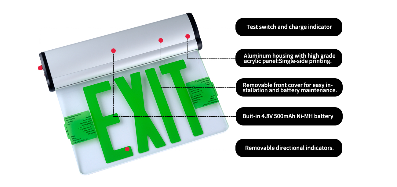 Ultima exit signum in consilio et versatility. Hoc viridi ducitur ore lit exit signum erit solvere fere quis ascendens configuratione problema.  Hoc unum style concedit laquearia, latus et murum monte installation.  In ore pontifex Lit panel construitur princeps gradus acrylic cum customizable directional sagittas ad punctum ad exitus directionem. Et amotibiles Aurelius facit installation et sustentationem capitis dolore-liberum!