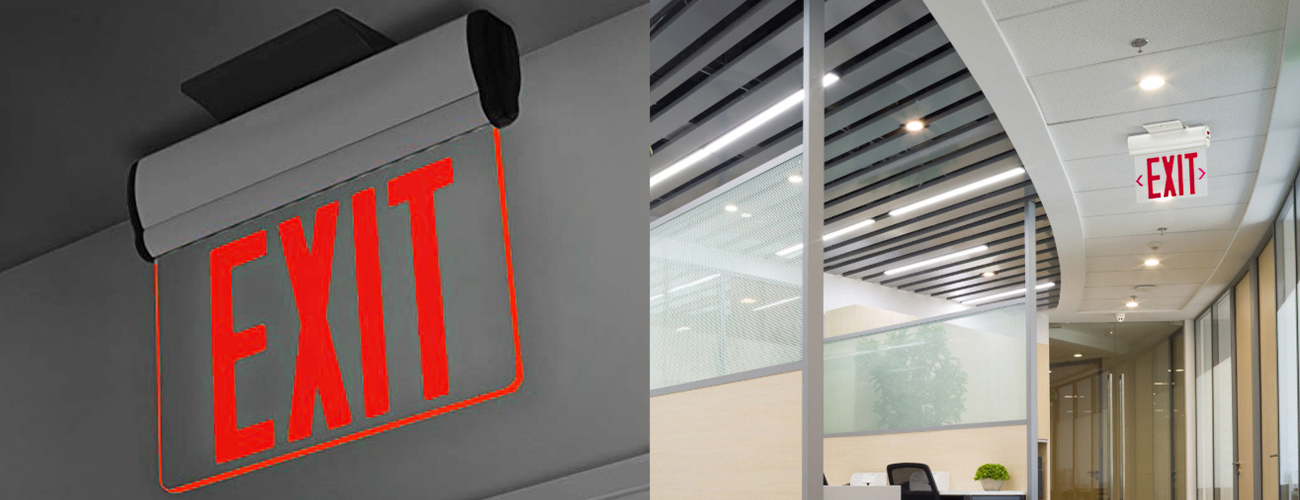 * Illumination - Hoc Edge Litt Exitus Sign Series praebet diu vitae ducitur illuminatio. Et unitas construitur cum rubeum excelsum output duxit tabula.  Energy consummatio est rated ad minus quam III watts pro ac solum exemplar unitates. Pugna tergum unitates industria consummatio est rated ad minus quam I watts.